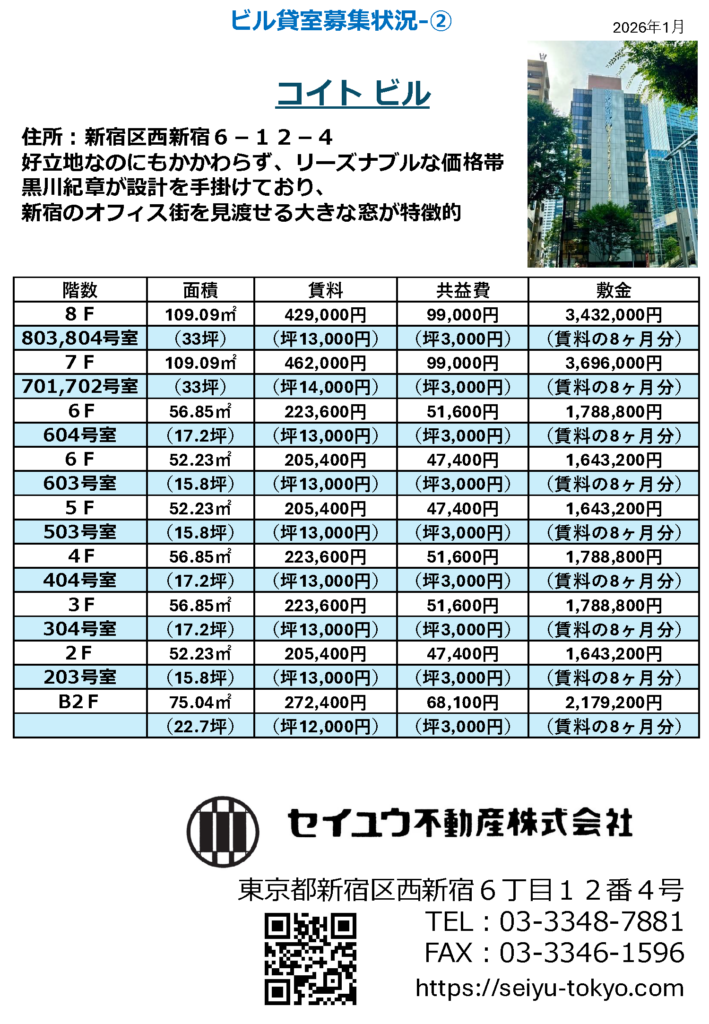 賃貸募集状況(賃貸オフィス・駐車場など) - セイユウ不動産株式会社 コンテンツへスキップ ナビゲーションに移動